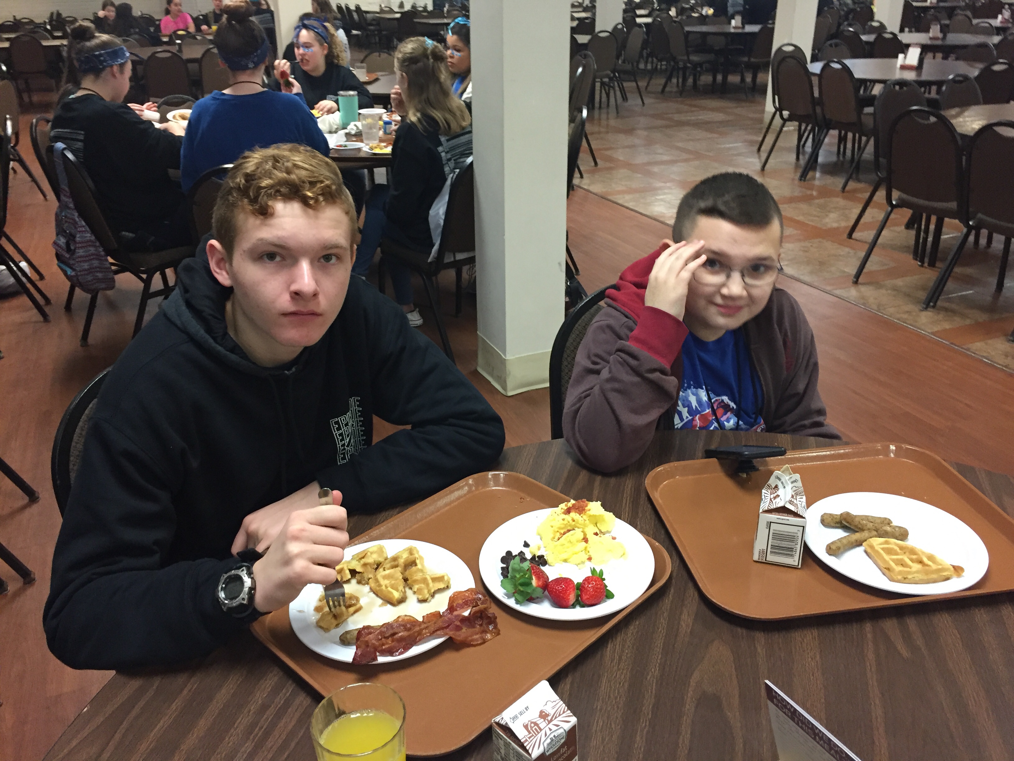 Second is a young boy approached Matt T. He stared and looked at his phone. Stared, looked at phone. “Can I help you?” “Is this you?” The young lad had a pic of Matt and our youth on his phone. He said “l found this phone and it has this picture.” Matt figured one of our kids lost their phone. Well, not a kid. Me. I left on tray at tray return … what a Goober.