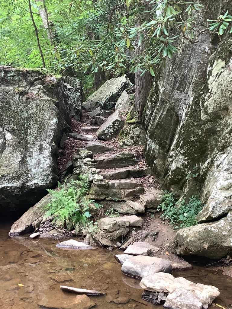 I got Lisa out into the woods. We went up to Blue Ridge Parkway this weekend and drove a bit. The trees are just beginning to hint that leaves will be changing soon … a smidgen of yellow, a pinch of red … but a whole lot of beautiful green as far as you can see.