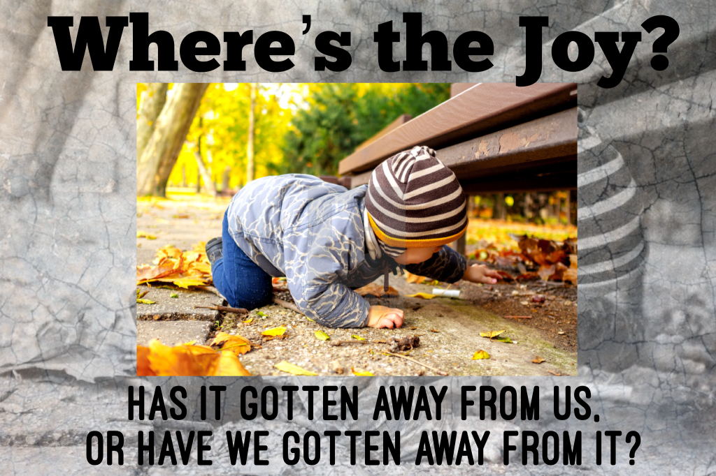 Where’s the joy gone? It’s still there, we’ve just gotten away from it ourselves. Get back to the source – get back to the basics of God.’s love and grace. You’ll find joy there. That’s where I want to be too! Will you join me?