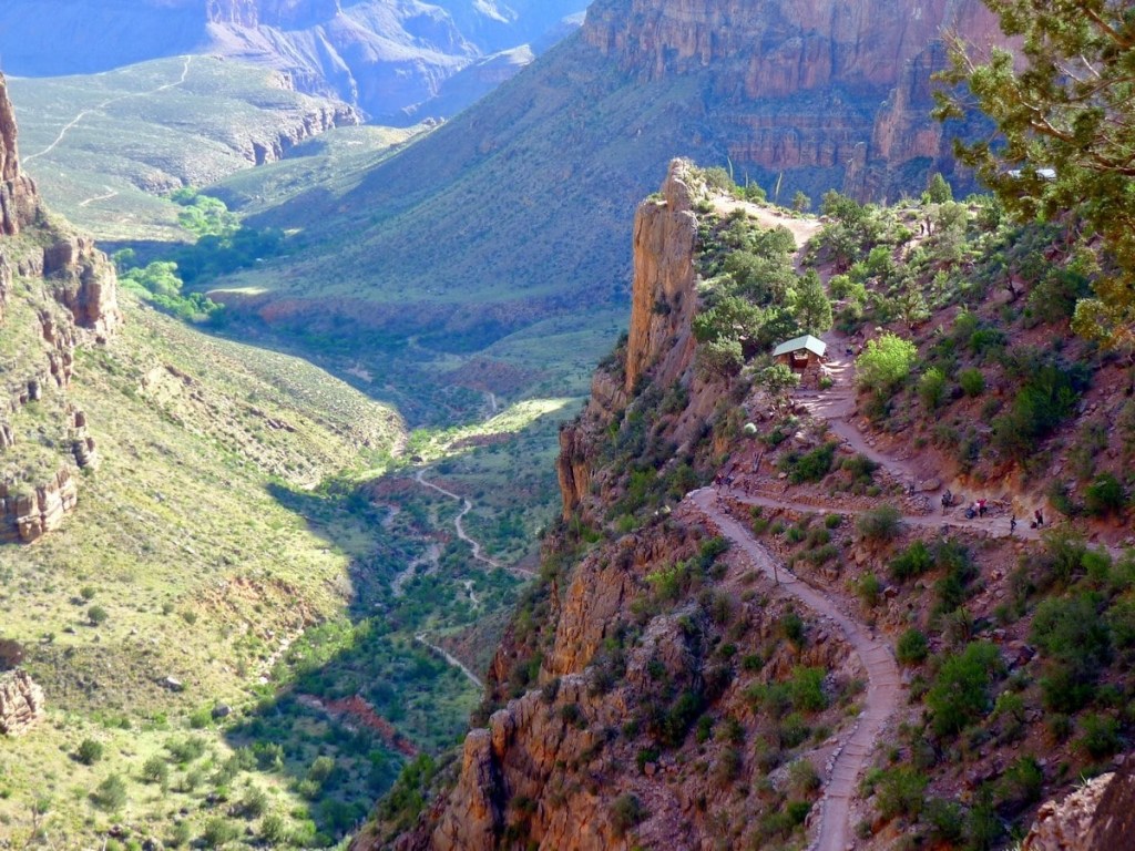 One of the toughest (most physically stressful hikes) I ever did was along a very popular trail – the Bright Angel Trail at the Grand Canyon. The trail itself wasn’t too difficult. I’ve done more difficult. But my body just wasn’t up to it. My son and I were on a long road trip, all in 10 days. Rocky Mountain national park, Yellowstone, San Fran, San Andreas fault, LA, Yosemite, Vegas, and more. Even a quick stop at Disney Land. The GC was on the last leg.