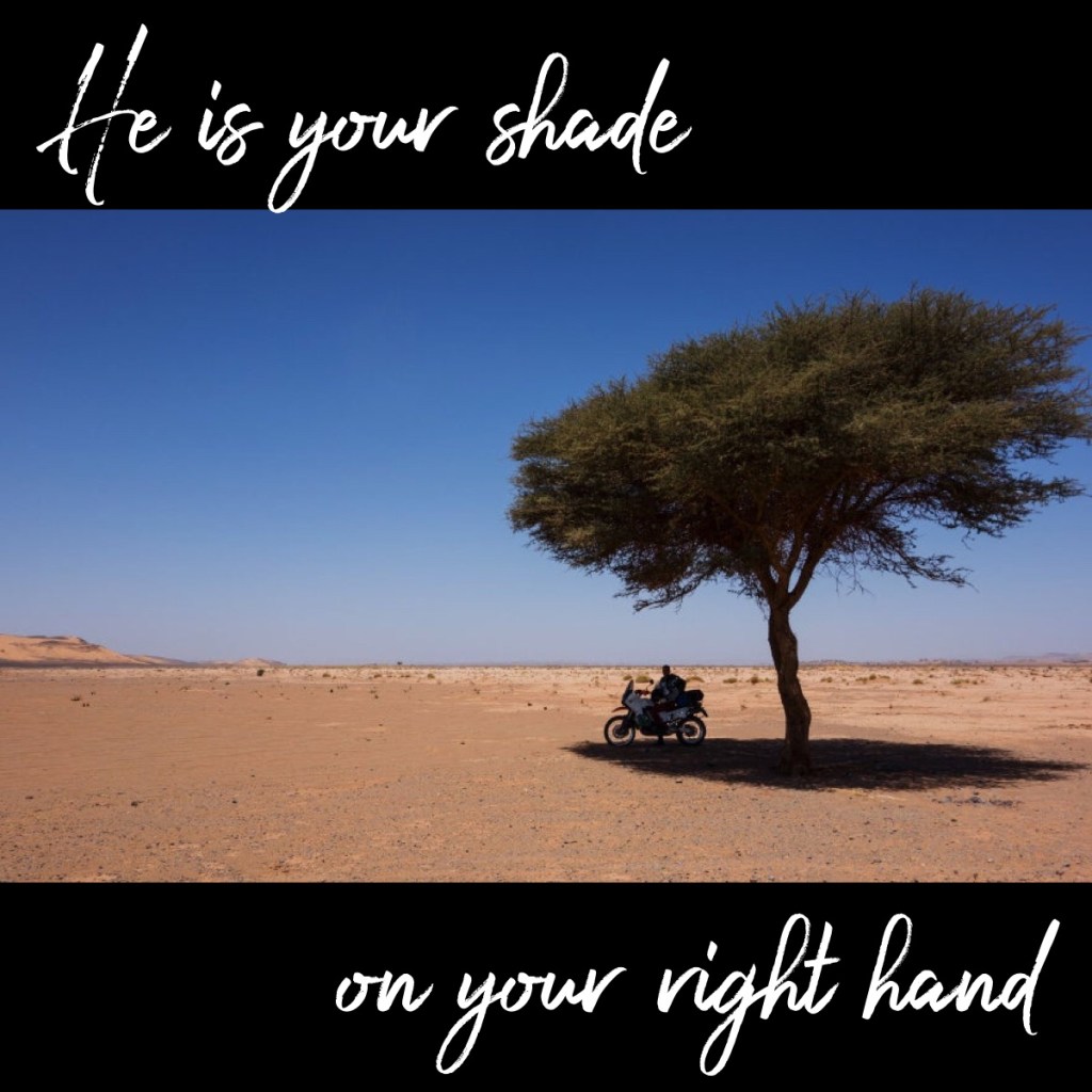 Weird. He is my shade? What does that even mean? In the text, it is parallel to the word “keeper” so it sounds like the shade is our protector, our defender from the perilous dangers. But how does shade protect me? And why the right hand?