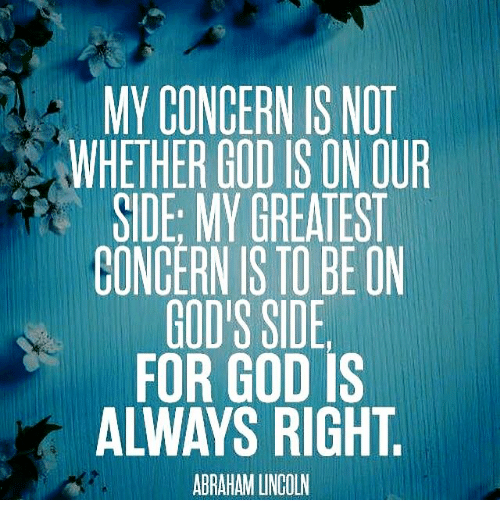 This “side” we are talking about is really not our side. God doesn’t back us up for our desires and our worldly battles. It’s not directly about God being on our political side or our sport’s team in a competition or on our side for turf wars in church life.