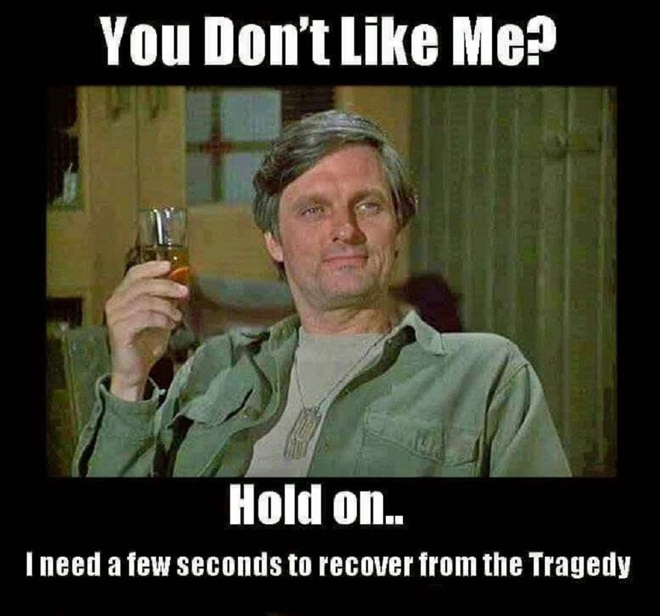 I’m talking about the lovable character Dr Hawkeye Pierce from the 1970s TV series M*A*S*H played by Alan Alda. This award winning series is the latest on my binge list as I try to avoid crowds by hermiting inside my home.