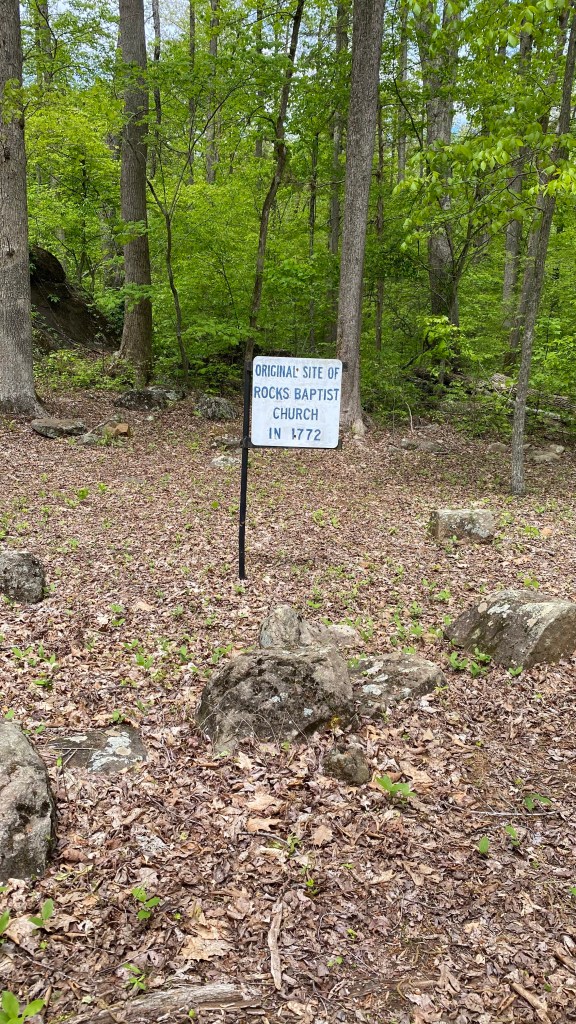 The location is right along what used to be the old stage coach trail. Yet time and the railroad made that stage coach trail relocate. It is the original spot where Rocks Baptist Church used to meet and worship for decades. On looking around, you can see where the church got its name – for the acreage has rocks large and small that have been there for millennia.