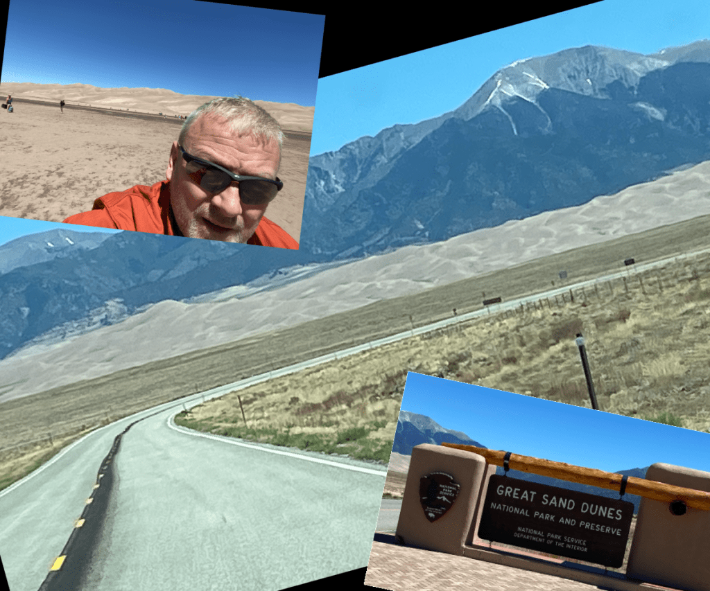 Another hotel and another bed. It was nice, especially knowing that I would be driving through the night at the end of this day. I headed out early to get to what would be a highlight of the adventure – the Great Sand Dunes. This unique phenomenon varies from 6-8 miles long, is almost 800 feet high, lays nestled at the foot of Alpine covered mountains, and is open 24 hours for visitors (unique in the NPS).