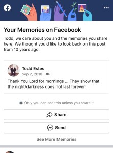Thank You Lord for the mornings … they show that the night/darkness does not last forever!