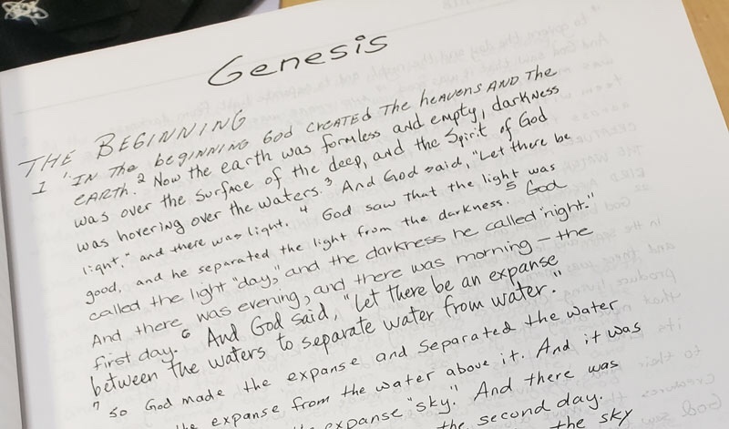 They lined up and wrote out their given verse. The result, a unique manuscript that was later copied and reproduced for those that desired a copy.