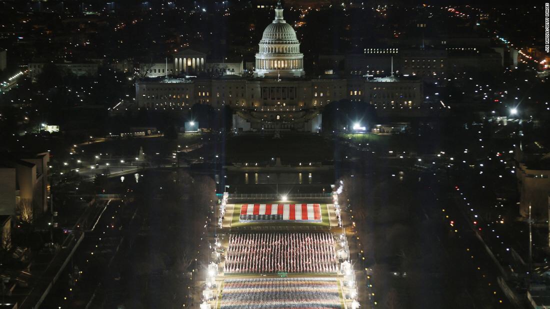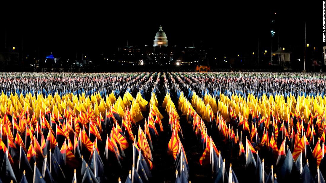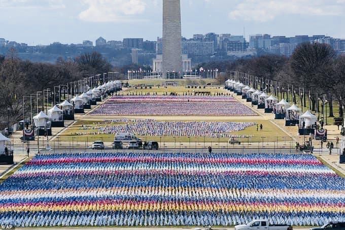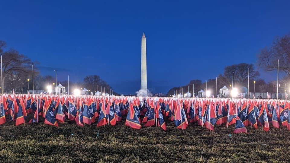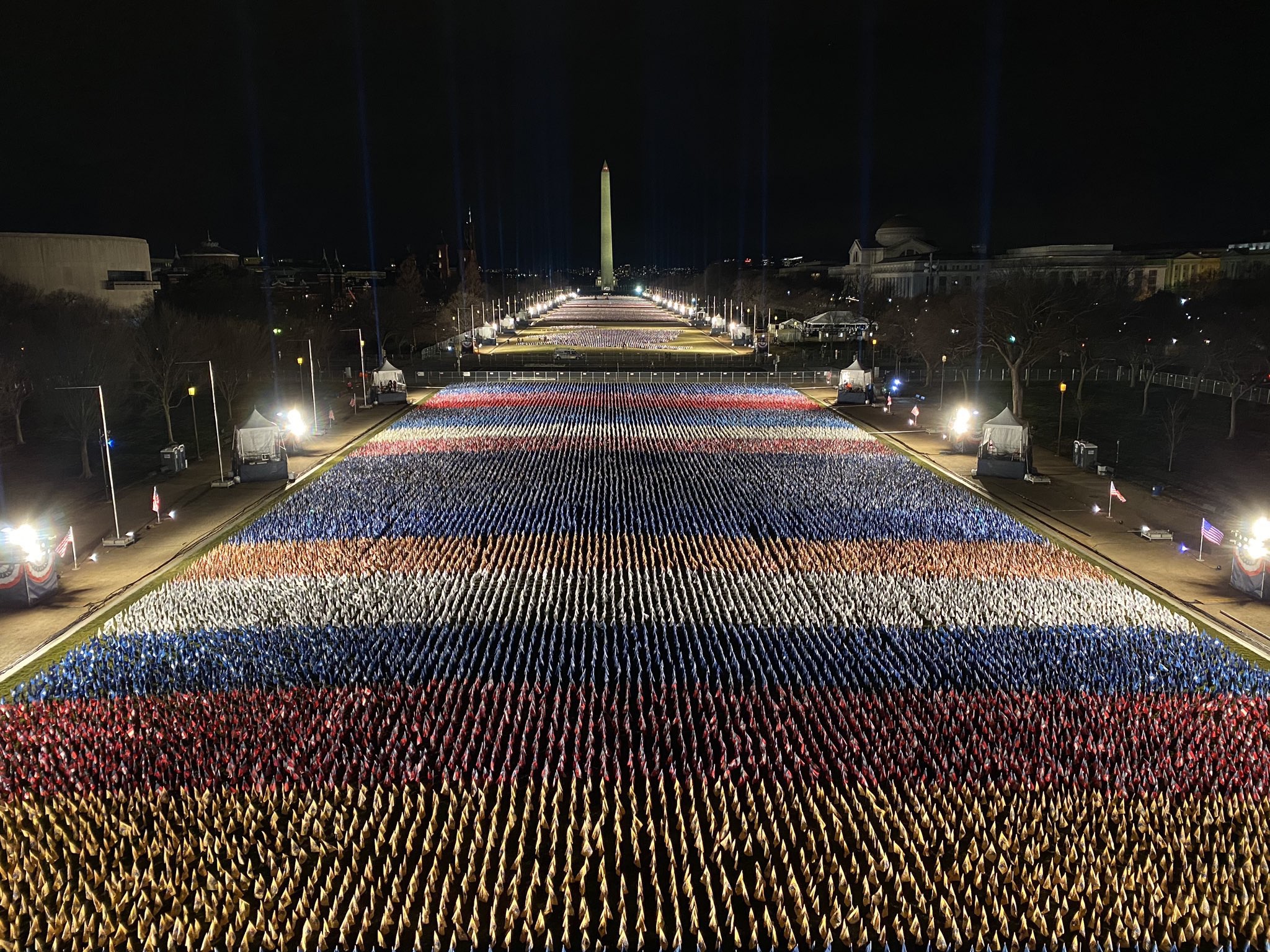 As a part of the inaugural display, and as a way to fill the empty National Mall, a tremendous display of flags has been put across the area visited by millions every year.