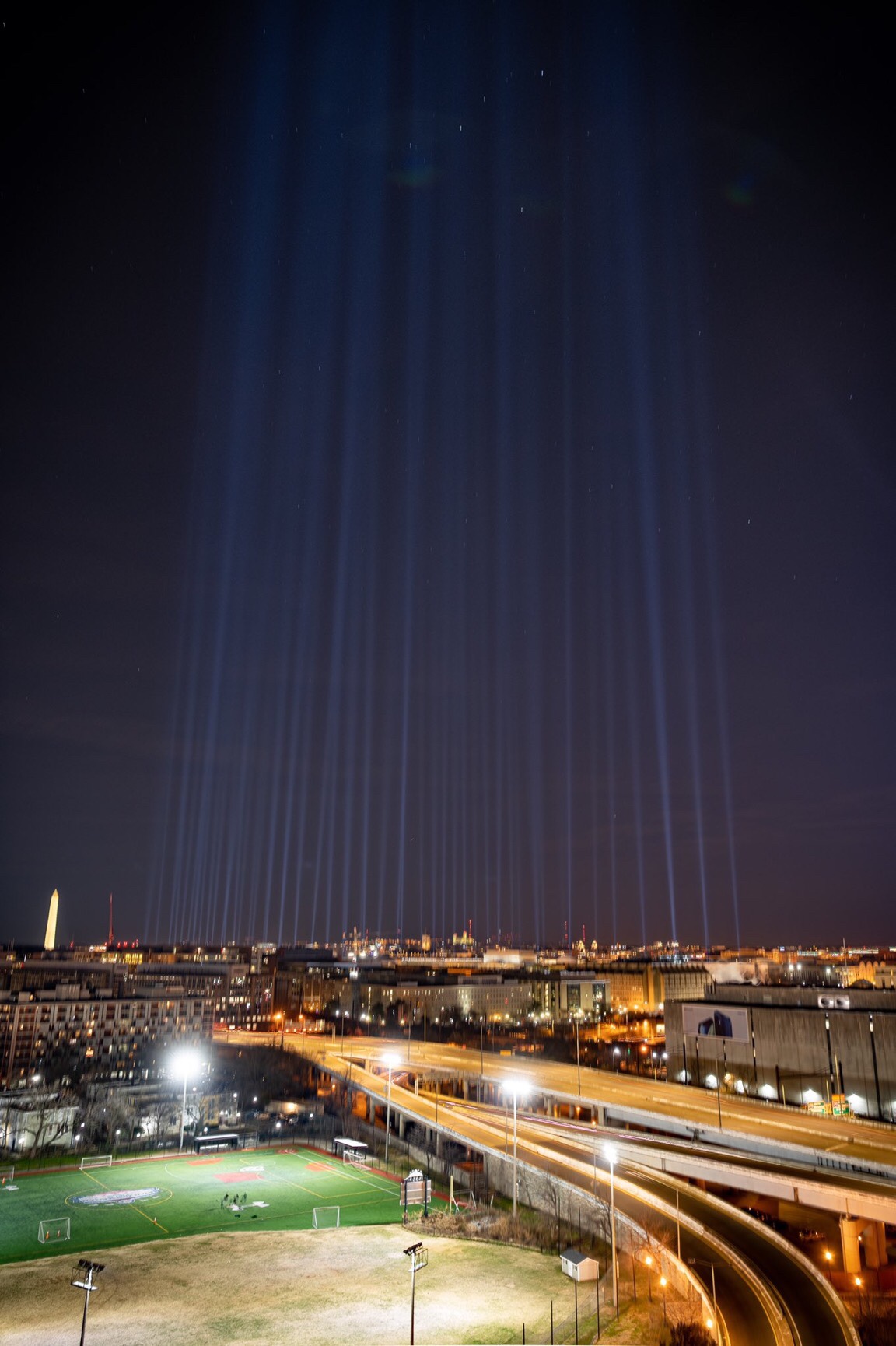 And then to add to the beauty, especially at night, 56 pillars of light are thrust into the sky to represent the states and territories.