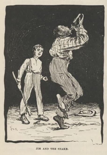 Huck never tells Jim he put the snake there. He never fesses up. But it does look like Huck learned his lesson. Oh his antics aren’t over this early in the book, but he doesn’t handle snakes as a joke anymore.