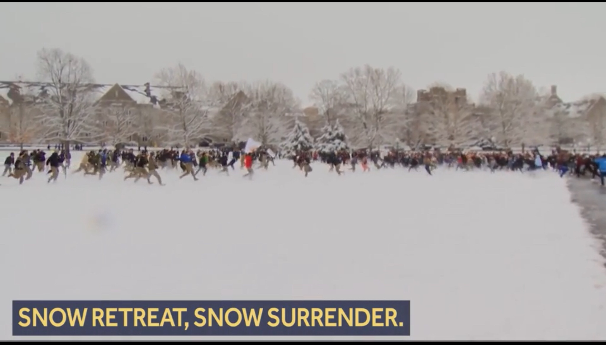 And VT had their huge battle as well. Theirs is more of an annual event at the first big snow. And it looked hilariously fun. Giant slingshots, mass mayhem, and so much more.