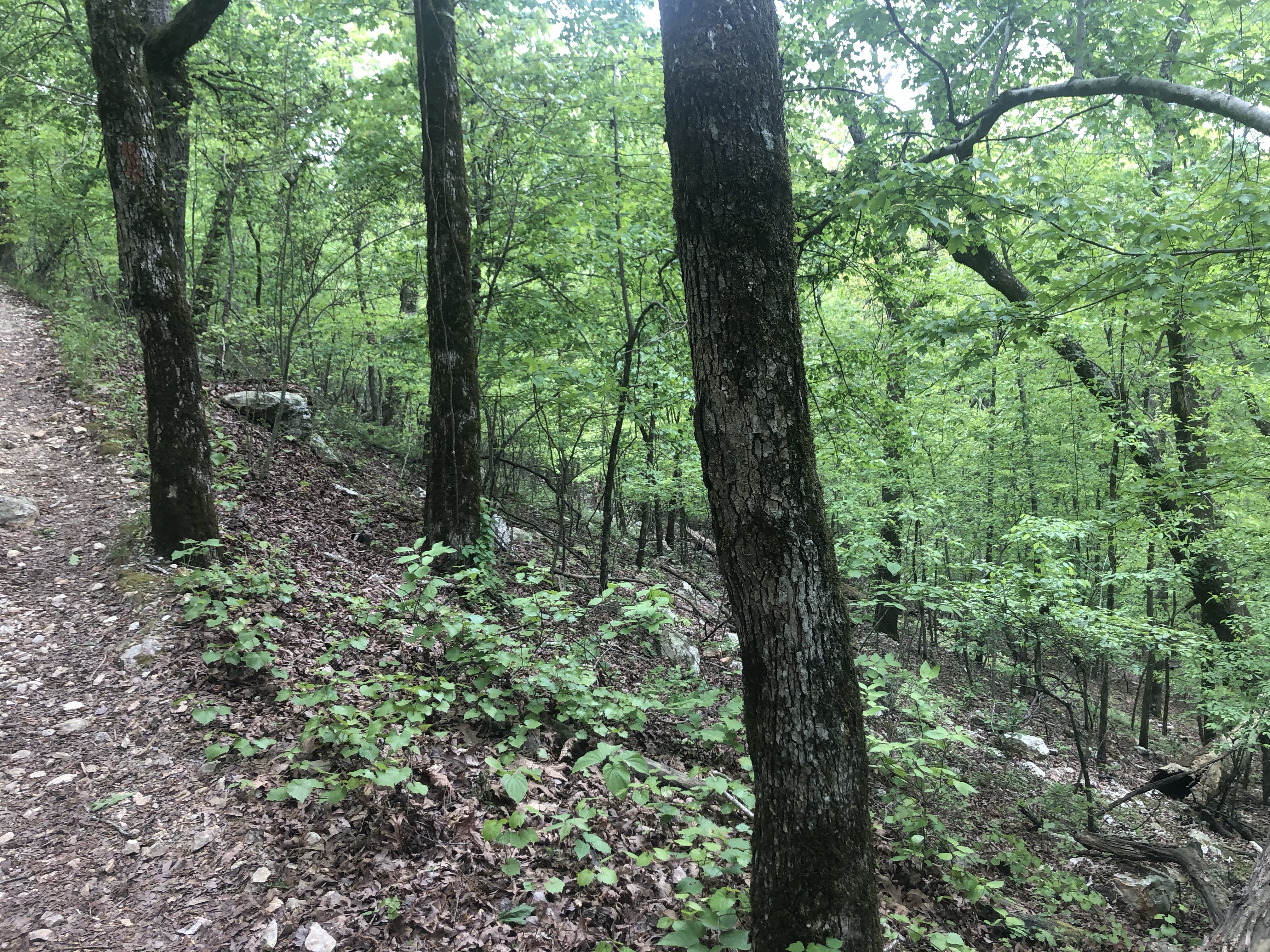 HIKING. It was Earth Day and I got outside. Hot Springs is a nice park. About 6000 acres. A bit commercial being so close to the town of Hot Springs. So the ambient noise was more than I am used to when enjoying Devils Marble Yard or trails along the Skyline Drive. But it was beautiful. However, I had to stop comparing, stop seeing the less than expected and start seeing the beauty.