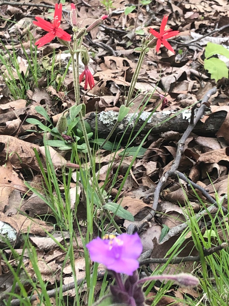– There were some small colorful flowers along the trail. Purple, red, and a few pink. These little splashes of color were a delight and probably overlooked by many. God’s beauty is often seen in the small details too!