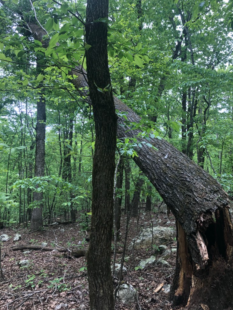 HOLLOWNESS. There she was. A majestic older hardwood tree that had blown over. The roots remained intact but the trunk had twisted and been mauled a mere feet above the ground. The tree did not fall completely. She rested at about a 45 degree angle where a sister hardwood had caught her, as if gently caring for her wounded friend. Had I been bit younger, I might have climbed the angled trunk just to say I could do it. Well, I can always say I can do it, but saying isn’t as fun as doing. But I resisted. Maybe it was the caution that the sister tree wouldn’t want to hold my weight too, or that I saw few people on the trail; and if I fell, I might lie there a while. Or maybe I was too tired from the 15 hour road trip right into the 6 mile hike. Doesn’t matter, I just looked.
