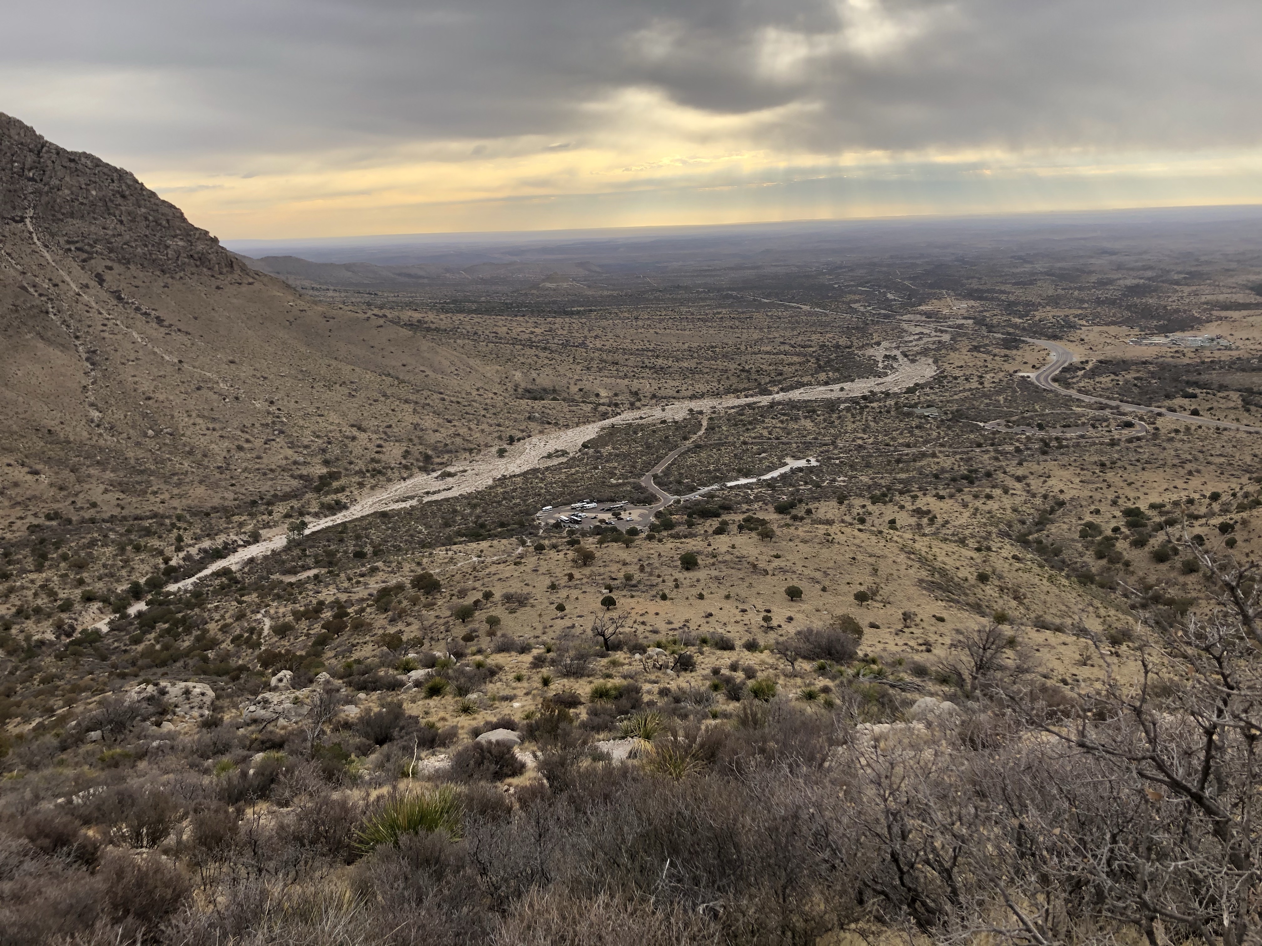 Half way up – panting, sweating, (crying) you begin to ponder if its worth it. You can see the top … it’s so far off … so you slowly continue. Two thirds in – hard but surviving. Almost 3/4ths of the way. Pace slowing down. Then BAM – you circle around to the other side of that mountain and realize the summit is not on that ridge line either. Another circle around. The Guadalupe has got to be running out of summits.