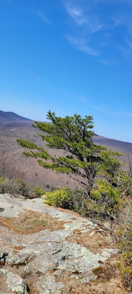 A few days ago, I hiked up to the the top of a mountain in the Washington and Jefferson National Forest. Yes, it was mostly barren trees, but already hints of spring we’re showing her lovely face. As I trekked higher and higher (tallest point about 4000 feet) i noticed changes in vegetation. Different blooms, different types of trees, etc. The Mountain Laurels were already green and leafy. It was like a layer of green, completely hiding the brown above and below you.