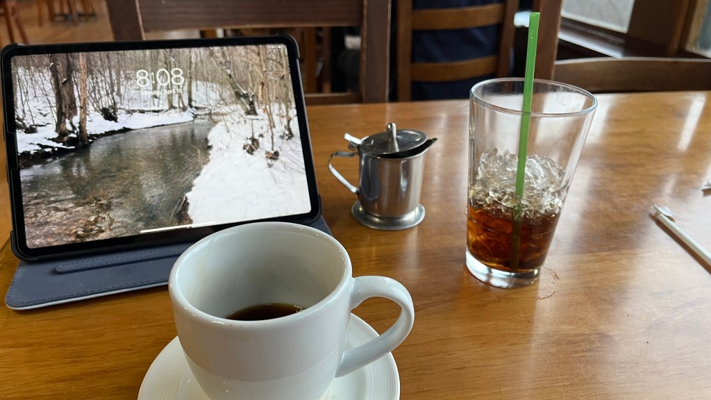Burying ourselves under the blankets early, we got to sleep quickly. By morning, the cold had arrived. A weird Norther was piercing much of the country and Skyland was just on the ridge of the front. By breakfast. Snow was descending. Roads and sidewalks were icing. And people were talking how this caught us all off guard. We expected possible rain … but icy snow?