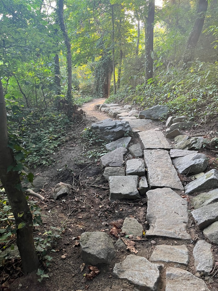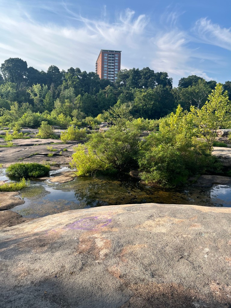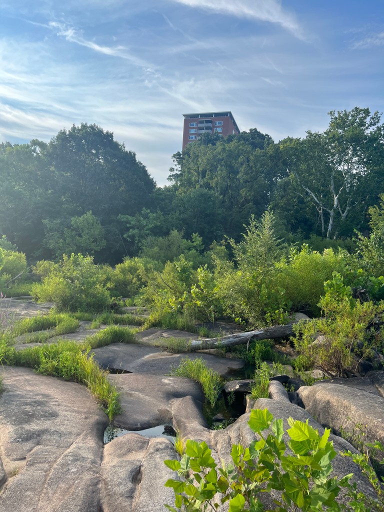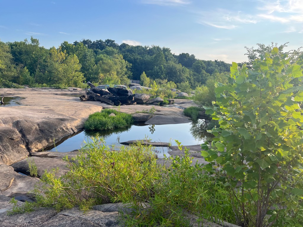 Now – here’s where my trek took a weird turn. I got to the Belle Isle parking lot. I had dropped some my water along the way (probably during rock jumping) and it was still early morning. BUT the heat index had already hit over 100F. I was drenched, tired and figured I ate too big of a breakfast. SO I checked AllTrails and it said I was less than 2 miles in and over 4 miles to go. Normally six is pretty easy, but I made excuses … food, heat, too long meandering on the rocks and the island itself, new Merrel Moab 3s (I pretended I hadn’t broke them in.) The remainder of the trial was new to me – trees? shade? asphalt? I did something I normally would never do. But since I was on an urban trail, and I could never do this in the Blue Ridge – I called a cab. Yep, was gonna hitch a ride back to my car. Oh the adventurer in me – I told myself I would try a new restaurant to make up for it.