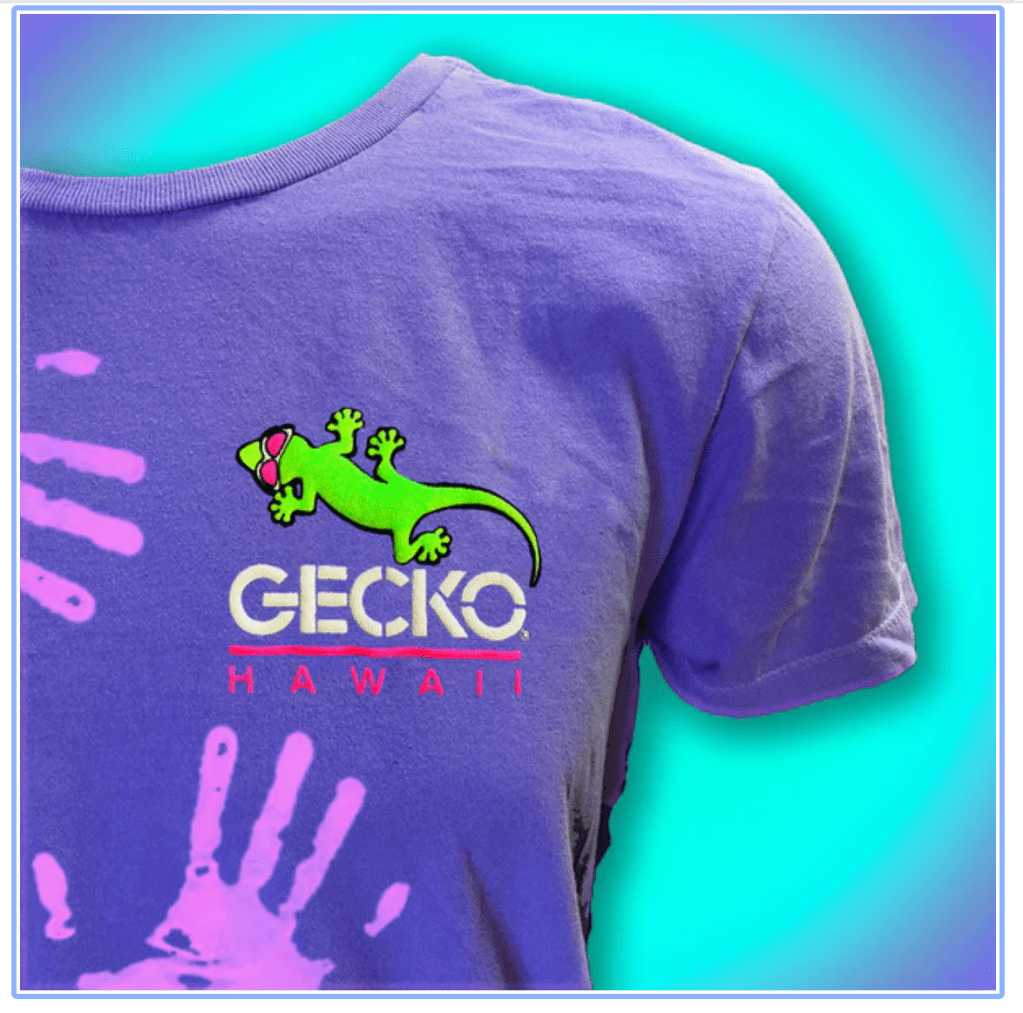 Do you remember Gecko Hawaii shirts and other attire of the 1980s? Well, they are back. With the vintage shirts being seen in the great series Stranger Things, the sell of these retro surfer shirts are going through a revival. Recently, I ordered one of their ‘hyperflash’ tees. We had a beach theme thing going and I decided to get one of these great tees that change from one color to another color by the warmth of the body.