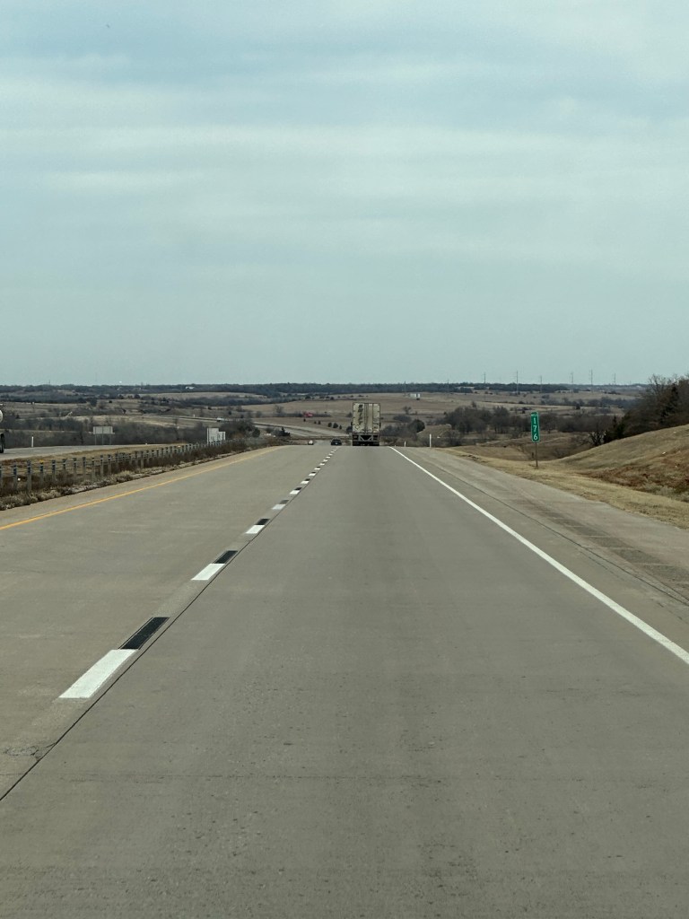 I really wasn’t sure where I would end up. I’m here and still not sure if I’m going to keep going north. I went through Oklahoma. Kind of wild. Saw a coyote, though not chasing a road runner. It was out on the field, just running.