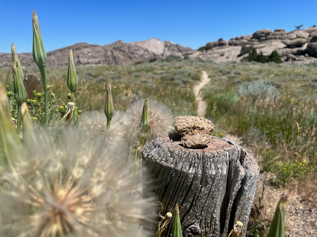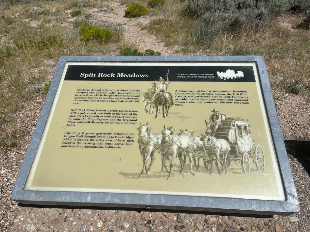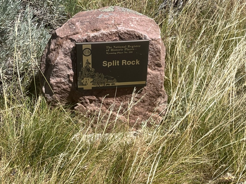 We continued and stopped at Split Rock. This little respite was not on the map. Well, not on the map we know. Years ago, this spot was well recognized for earlier travels. The Sweetwater Valley contains three distinctive granite landmarks: Independence Rock, Devil’s Gate and Split Rock. The last of these, Split Rock, with its unforgettable gunsight notch, was visible to emigrants for two days or more as they approached and then left it behind them.