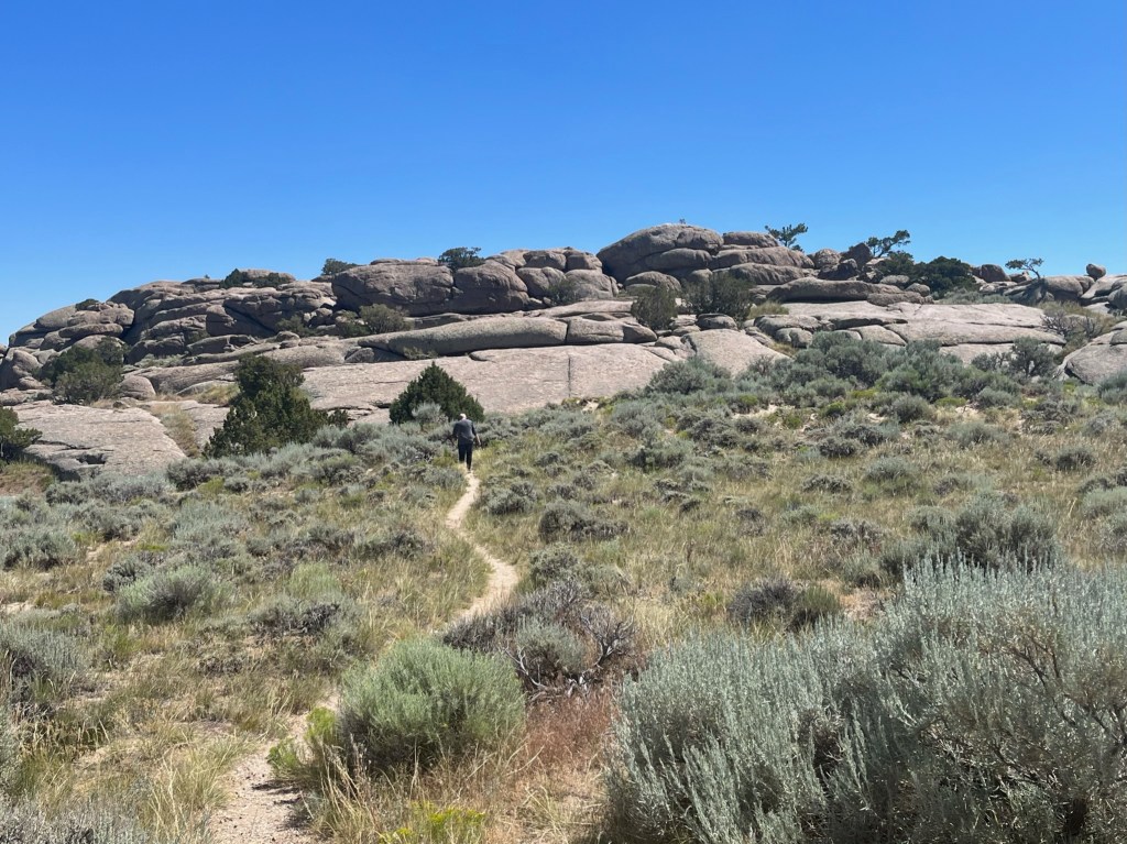 A small ranch used to be there. A Pony Express station was there too. Though the creek was down in the valley, it is said the old wagon train wheels have left ruts that still exist in the dirt. My wife continues her adventurous spirit with scaling the rocky side of the hill. This was exciting to see her do the small scrambles.