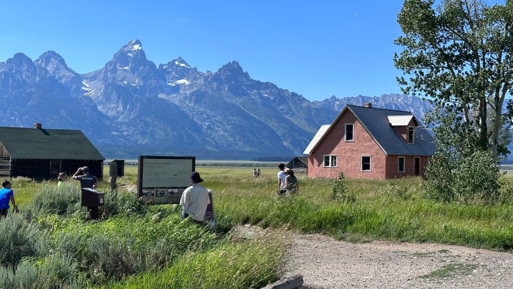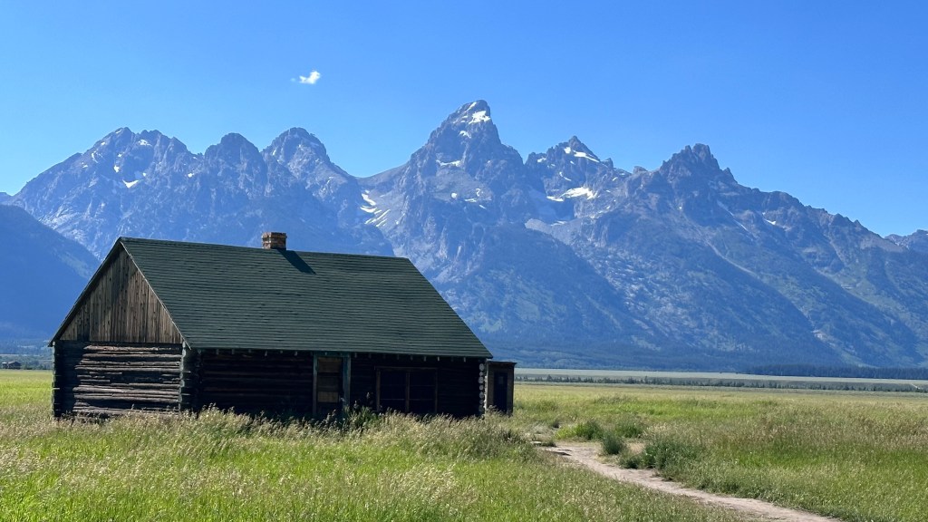 We headed to Mormon Row – a historic area that includes old farms. The barn there is the most photographed barn in the world. And while the barn/farm house/outhouse/second barn/etc are old but living in Evergreen VA – they were pretty common buildings to my everyday viewing. But nothing here, even in the foothills of the Blue Ridge Mountains, NOTHING can compare to the backdrop of the Tetons.