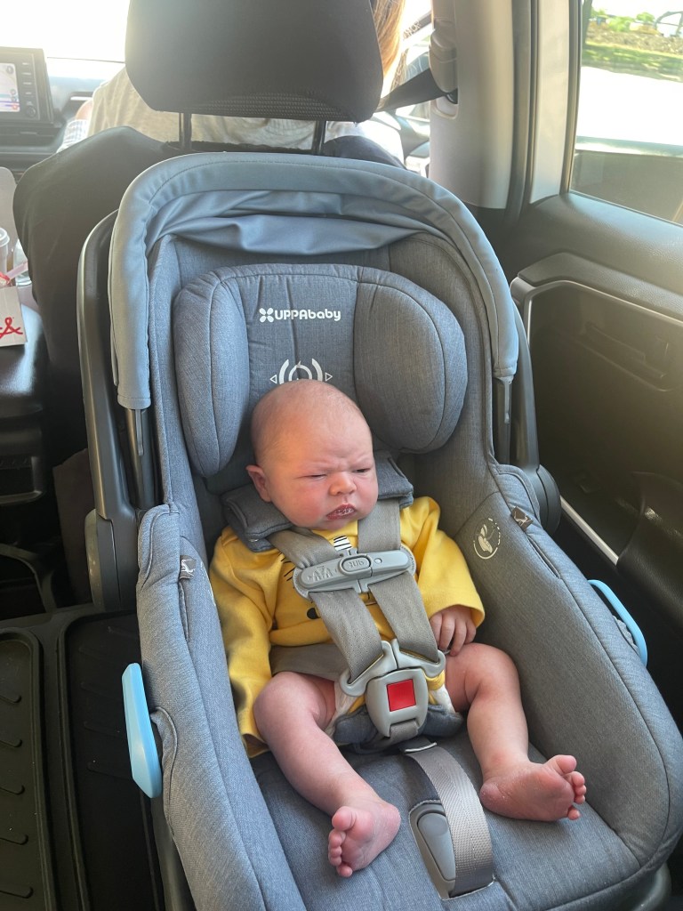 When we left the hospital with our son, we put his tiny body in the special car seat (not the special type you find today) … he was such a tiny body in the oversized chair. At the first turn, we soon realized the car seat had not been completely latched. Sooo, the car seat did a 180 and flipped upside down. I laughed, Lisa screamed, and our son just stared at us (maybe he was used to upside down inside the warm womb.)