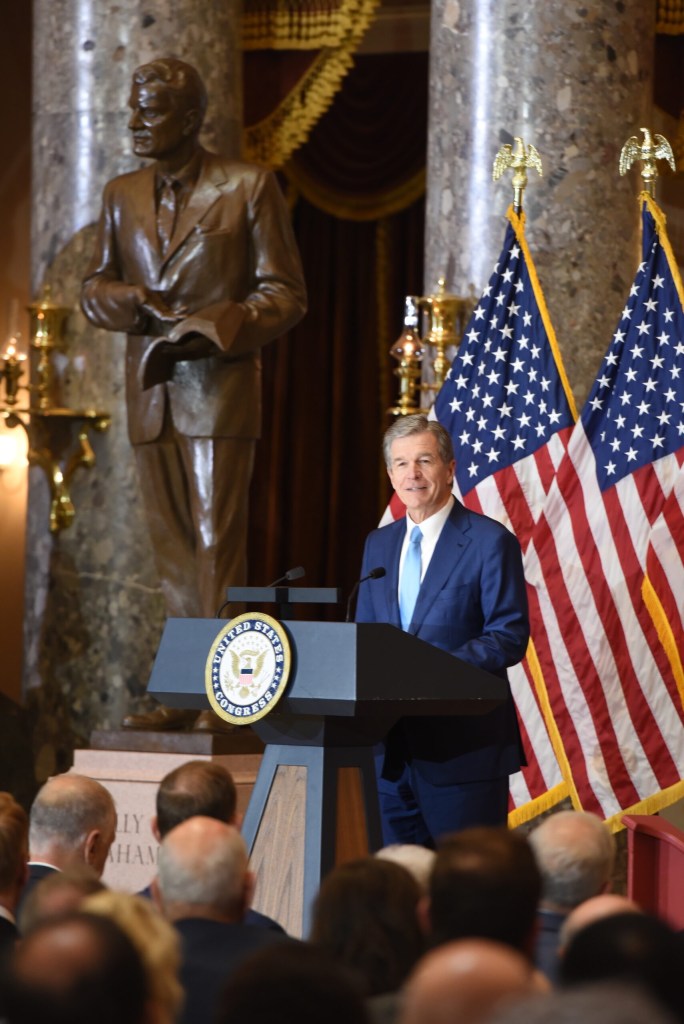“Today, we acknowledge that he is a better representation of our state than the statue it replaces, which brought memories of a painful history of racism,” Cooper said. “Not that Rev. Graham was perfect – he would have been the first to tell us that. … But he believed, as many of us do, that there is redemption, and he gave his life to remembering that message.”