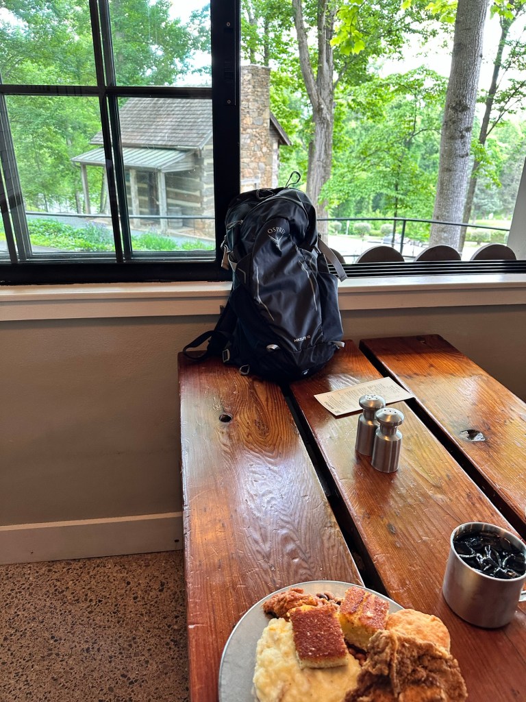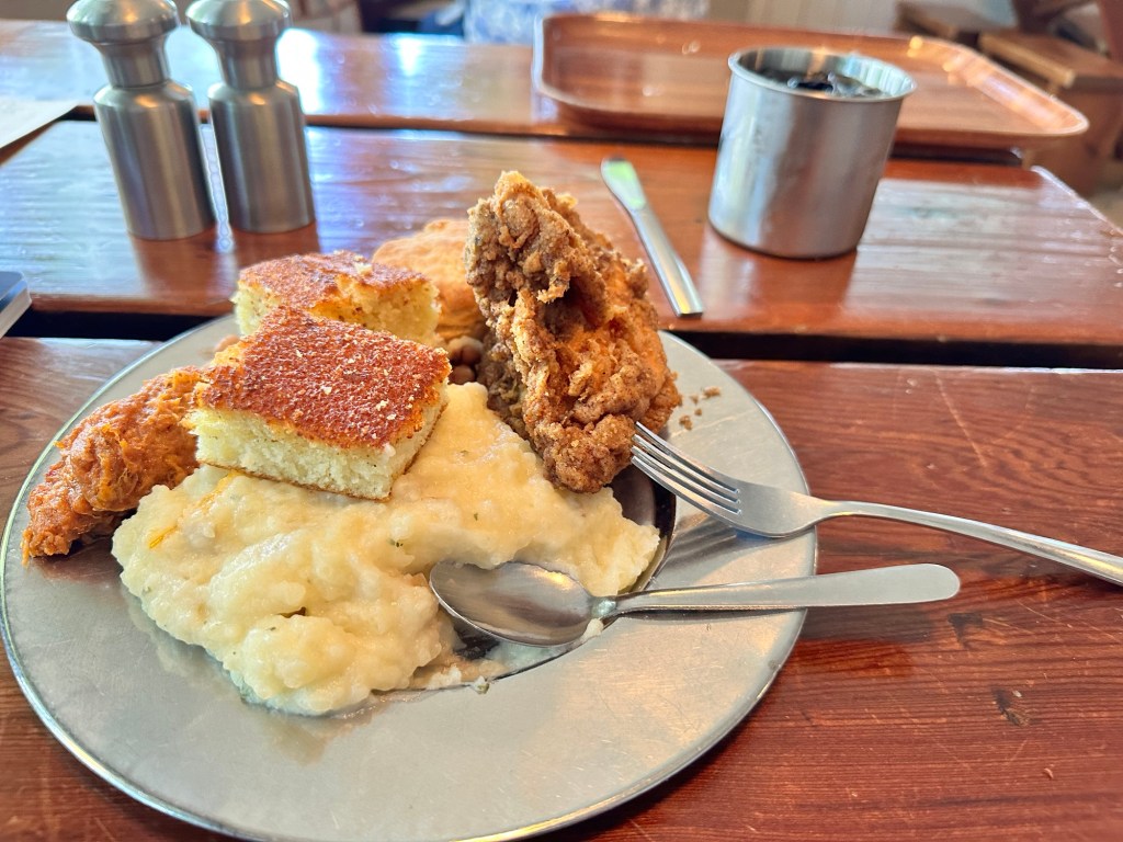 This has always been a delight with chicken, beans, mashed ‘taters, biscuits and more. It’s all you can eat and do not go if you’re on a bird’s caloric diet (so I went alone without my sweet sparrow of an eater wife.) The patio seating gave a great breeze as I dined under the limbs and great light to study some.