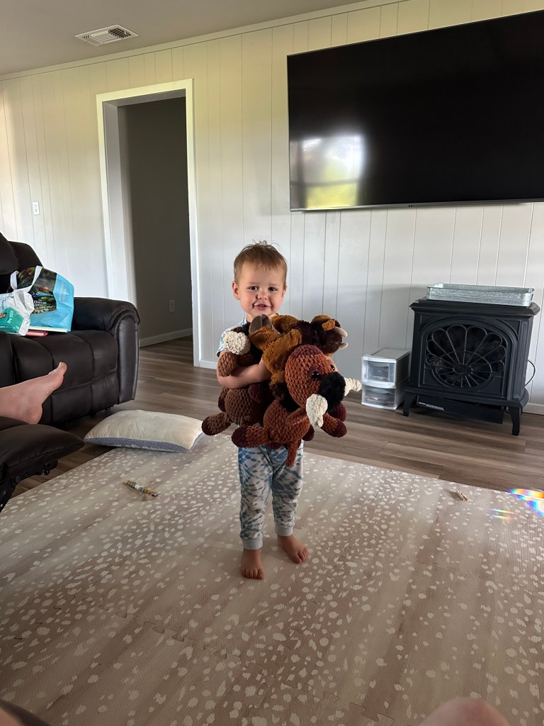 Sunday, at their farm, he broke a clavicle in the bouncy house. They didn’t know until a few days later when they took him to the urgent care. Needless to say – his Bubbish (nana) wanted to comfort him so much but has to yield to the thousand miles separating them. But … we know others are comforting him.