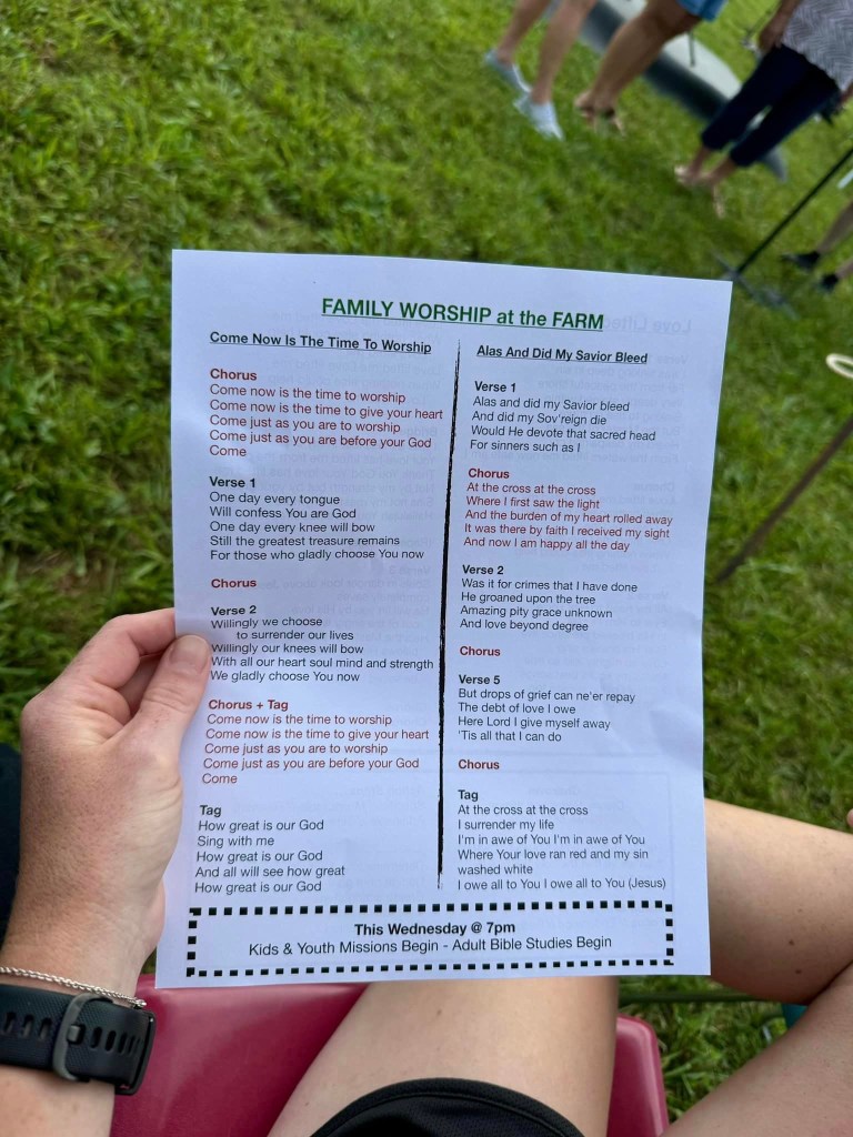 So we relocated from our little corner of a rural community … travelled just 15 miles … gathered at church owned small camp … that had been converted from farm land … and worshipped. Okay, we had a fabulous spread of food afterwards and people will gather when they are feed. But …. the Family WORSHIPPED.