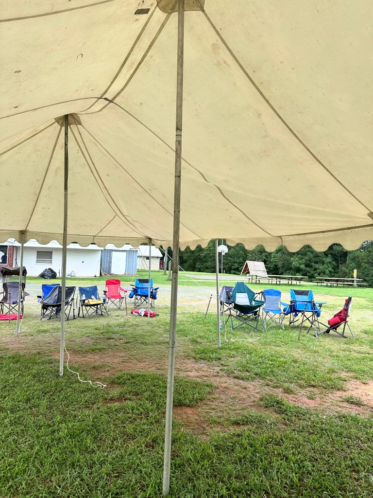 We had 2 new pole tents. We used outdoor picnic tables. We set up a portable sound system. And we worshipped. Okay, the fact of no cell service and no wifi meant no stream, but we worshipped.