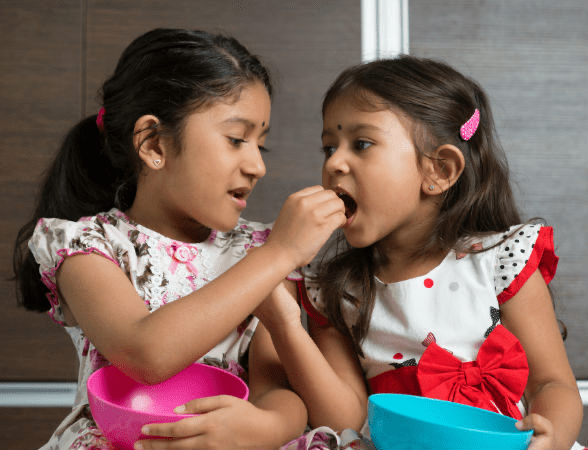 - Sharing starts to become natural, even sharing food if they are hungry. This shows a deepening of concerns for others.