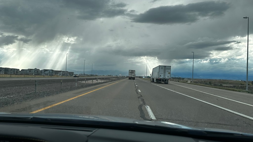 Finally, we made Colorado in time for a deluge just east of Denver. A bit nerve racking, but Lisa was a pro. I didn’t wear out the passenger side floorboard … and those nail marks in the door handle don’t belong to me. (Right!)
