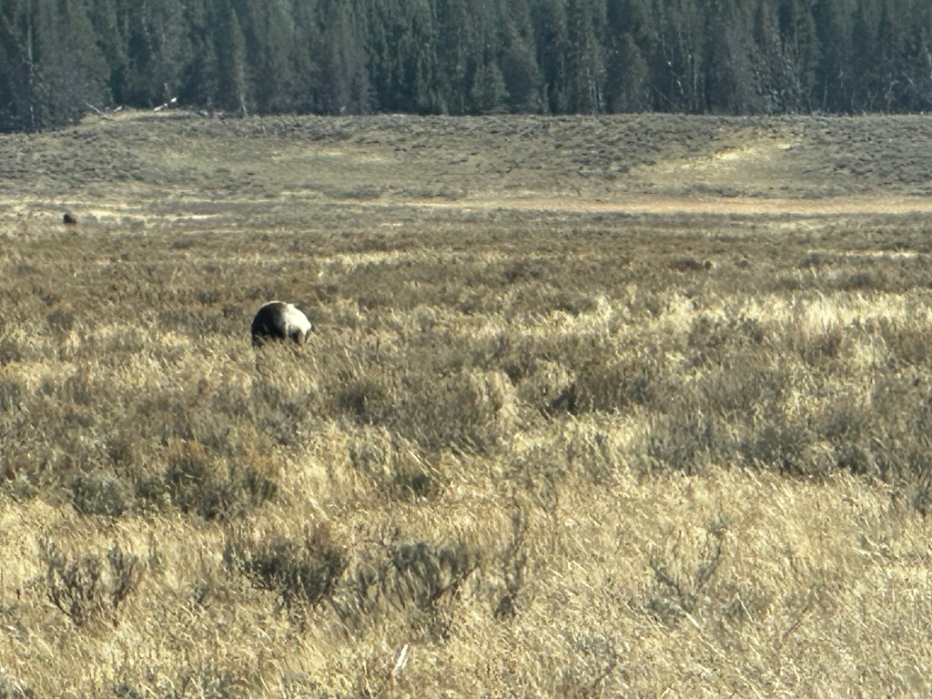 YNP was great. We saw the regular sights, mud holes, colorful geysers. A giant lake or two. Water falls. Eagles. Bison. Pine trees. We even checked off a bear sighting.