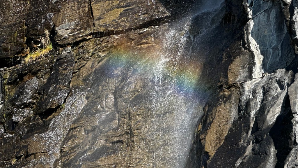 One cool sight was a small water fall (?) coming from the high ridge along the road. This water fall was not anything to write homie about, but it was a particular time of day that created a rainbow in the middle of the water fall. (The pic doesn’t do it justice.)