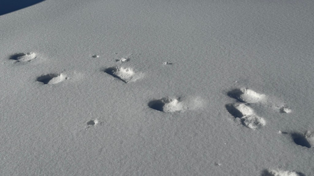 As I walked over the frozen tundra of the church’s parking lot, I stepped in the footprints I left two days prior. It gave me a better stability, a point less likely to slip or slide. My trekking poles were poked in the holes left behind by the holes poked prior. (again, say that three times real fast!)