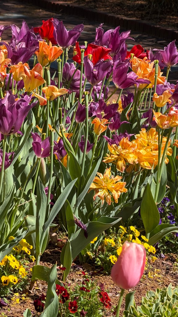 It was just a little past prime tulip season, but there were still quite a few colorful perennial herbaceous bulbiferous geophytes from the Tulipa genus. And I won lots of points with my wonderful for tulips are her favorite.