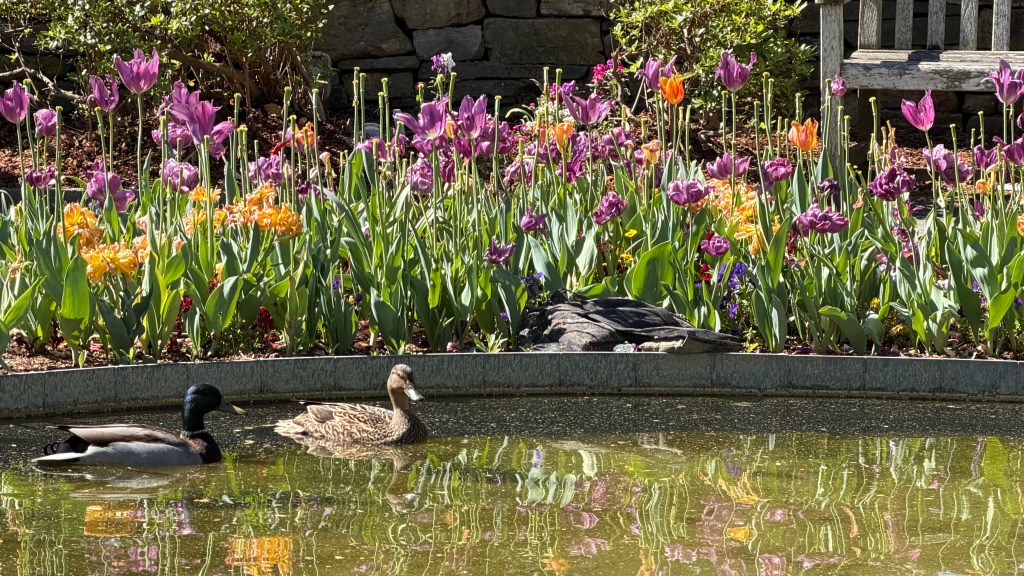 - Ducks. Wait, this was a tour to see the flowers. However, in the little cement pond there were a couple ducks. The beauty and grace and simplicity of two fowls just floating and chillin’. Sometimes you are looking at one thing (flowers) but there are other things to appreciate and take notice (ducks).